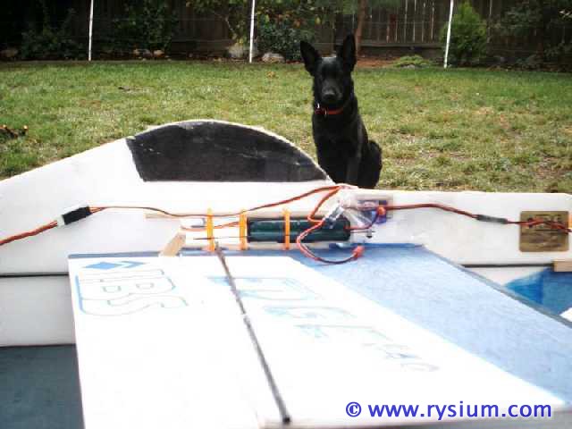 It took me almost two weeks to finish my plane (peeling off the paper skin from the foamboard is a killer).  When I tried to fly it, "BANG" - I hit the only rock on the field.  GWS gearbox is broken.  I had to get a new one.