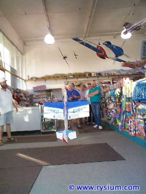 I took it to our local hobby shop, to show it to our guys.  Dave was there.  I asked him, if he would like to try it.  He said "No problem, when?".  "What about now?" I answered.  I was thinking about going to the local park.  Dave looked around, and said: "OK, it's enough room here.  Bring the radio, and let's fly it".